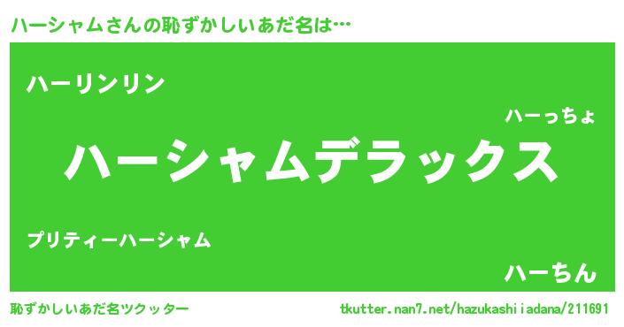 | 意味不明あだ名 | 『自称ハーシャム』『永久保存ハーシャム』 |