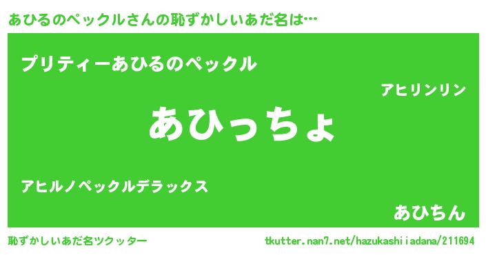| 伝説のあだ名 | 『秘められし忍者あひるのペックル』 |