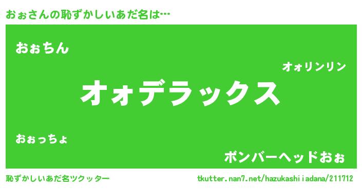 | 意味不明あだ名 | 『自称おぉ』『永久保存おぉ』 |
