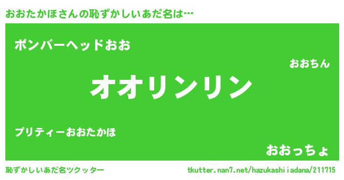 | 意味不明あだ名 | 『とにかく怪しいおおたかほ』 |