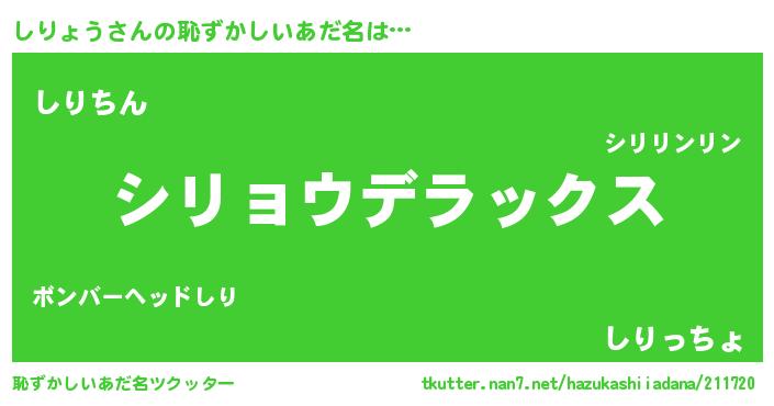 | ヒーロー風カッコイイあだ名 | 『最強戦士シリョウ』『仮面シリダー』 |
