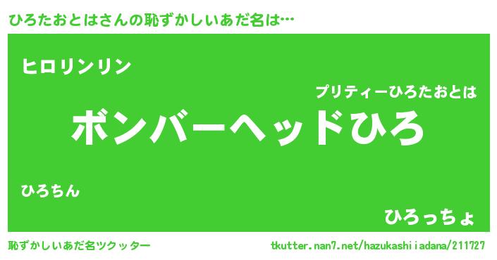 | ヘコむあだ名 | 『ひろを』『つくし』『ひろっふぃ~』 |