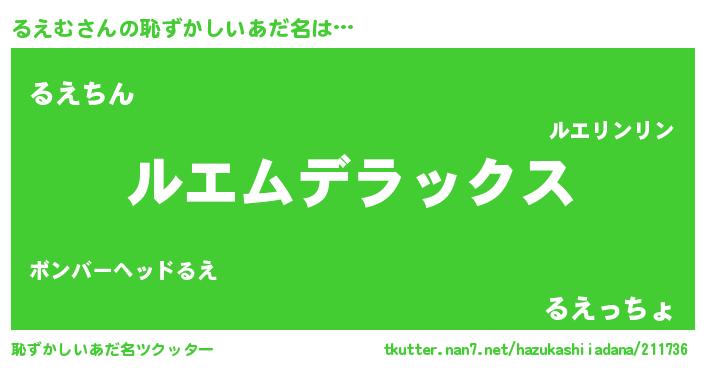 | ヘコむあだ名 | 『るえむ(遠い目)』『なまこ酢』 |