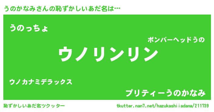 | 意味不明あだ名 | 『とにかく怪しいうのかなみ』 |
