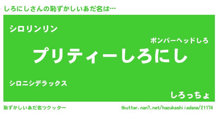 | 胡散臭い通販商品みたいなあだ名 | 『億万長者になれる霊験あらたかなお札…その名も「しろにし」』 |