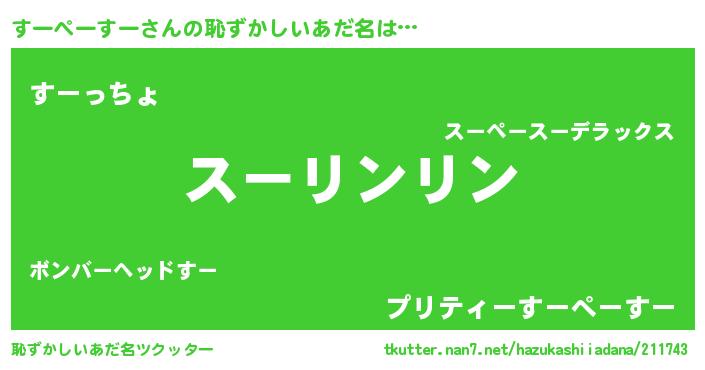 | ヘコむあだ名 | 『すーぷりん』『なまこ酢』 |