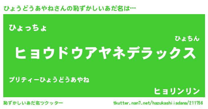 | 意味不明あだ名 | 『自称ひょうどうあやね』 |