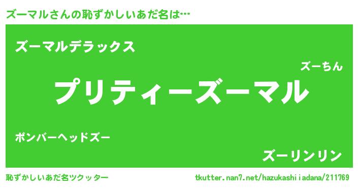| 意味不明あだ名 | 『ペロリンズーマル』『自称ズーマル』 |