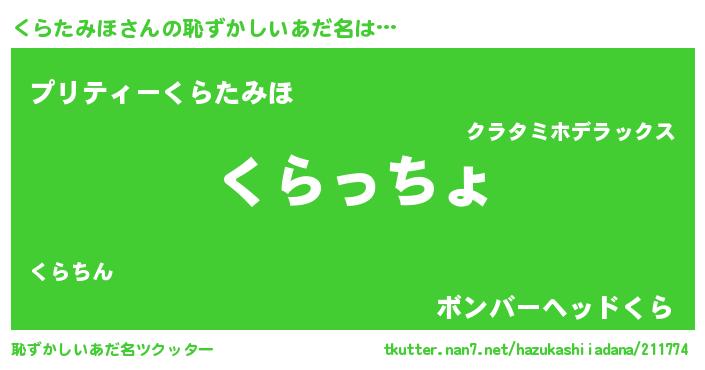 | 欧米人風あだ名 | 『くらたみほクリステル』 |