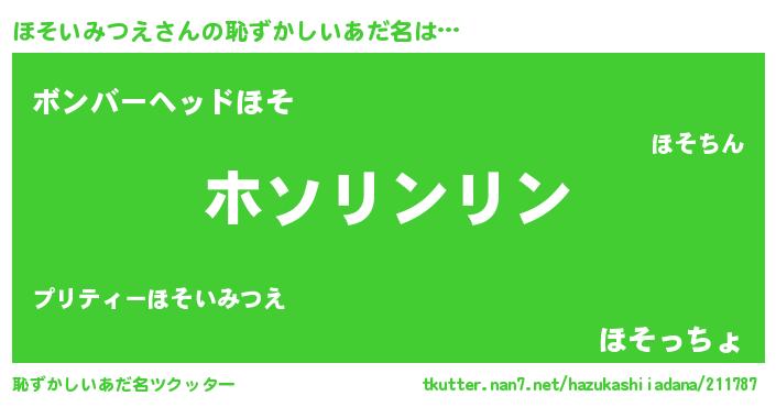 | 意味不明あだ名 | 『住所不定無職ほそいみつえ(2歳)』 |