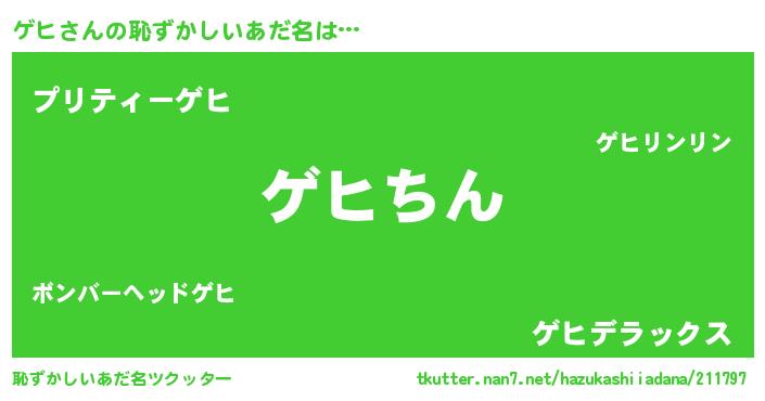 | ヘコむあだ名 | 『ゲヒ(笑)』『ゲヒもー』『ゲヒっぺ』 |