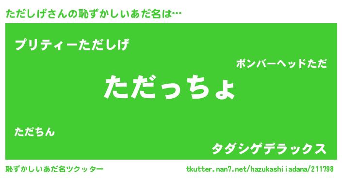 | ヒーロー風カッコイイあだ名 | 『ウルトラただしげマン』『仮面タダダー』 |