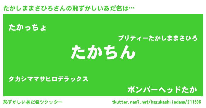 | ヘコむあだ名 | 『たかしままさひろ(笑)』『酢こんぶ』 |