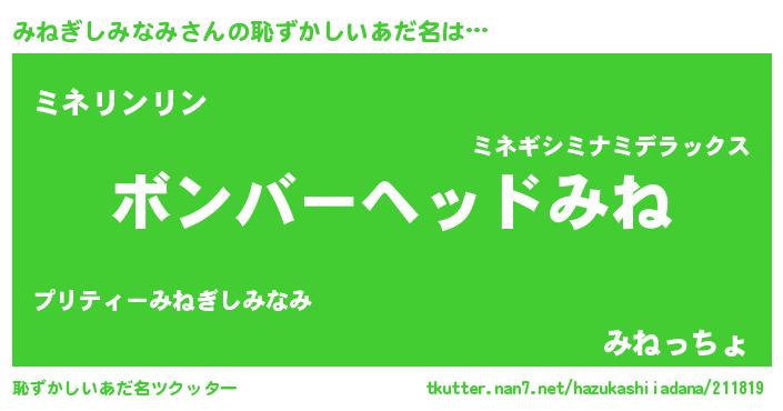 | 料理風あだ名 | 『みねぎしみなみごはん』 |
