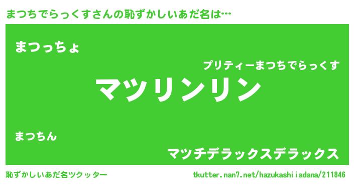 | 欧米人風あだ名 | 『ウサインまつちでらっくす』 |