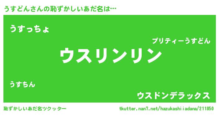 | 女子向けラノベタイトル風あだ名 | 『うすどんは平凡を望む』 |