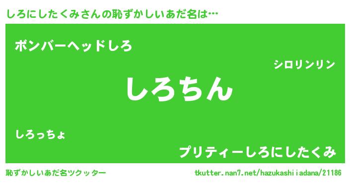 | ヘコむあだ名 | 『しろにしたくみ(遠い目)』『しろもー』 |