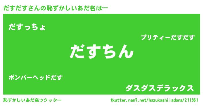 | 意味不明あだ名 | 『永久保存だすだす』『自称だすだす』 |
