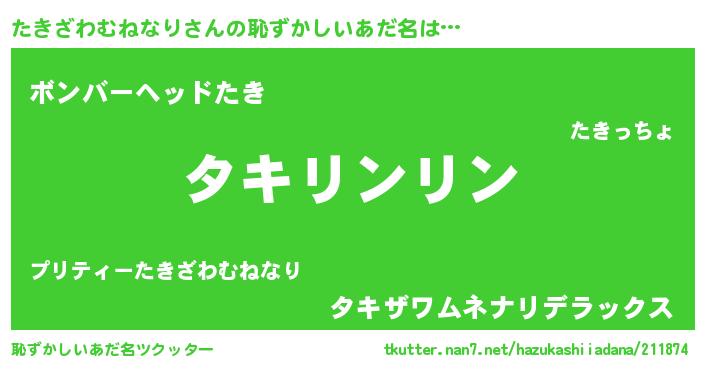 | ヘコむあだ名 | 『たきぷりん』『豆乳』 |