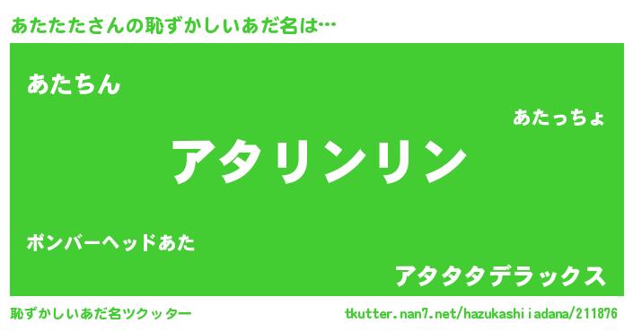 | ヘコむあだ名 | 『あたっちょ』『あたたた(遠い目)』 |