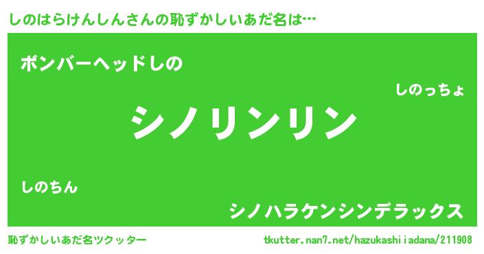 | 胡散臭い通販商品みたいなあだ名 | 『信頼と実績のサプリメント…その名も「しのはらけんしん」』 |