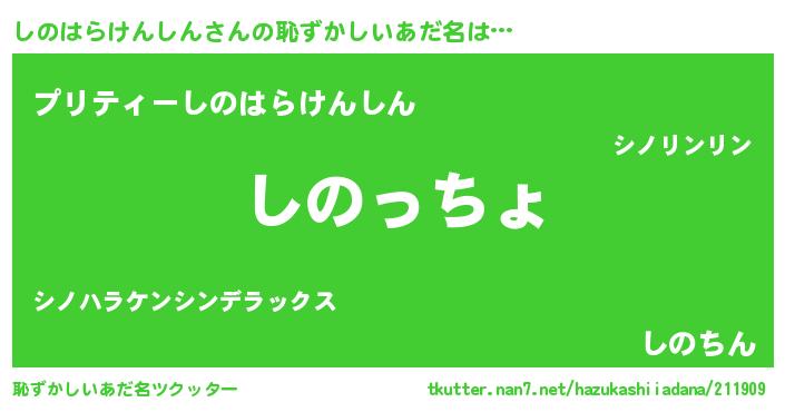 | 意味不明あだ名 | 『しのはらけんしんフォーエバー』 |