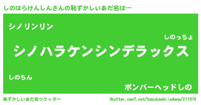 | 意味不明あだ名 | 『住所不定無職しのはらけんしん(14歳)』 |