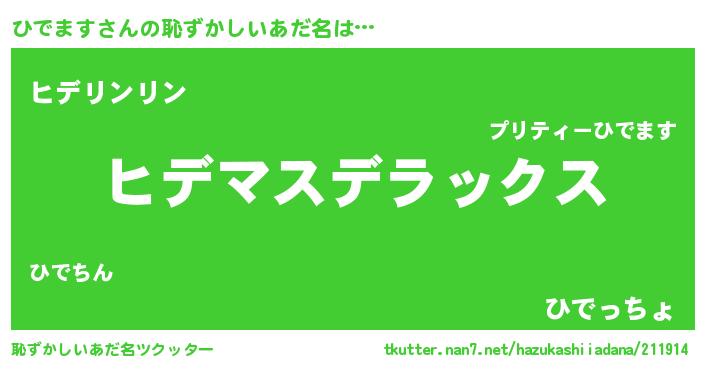 | 男性向けラノベタイトル風あだ名 | 『ヒデマススレイヤー』 |