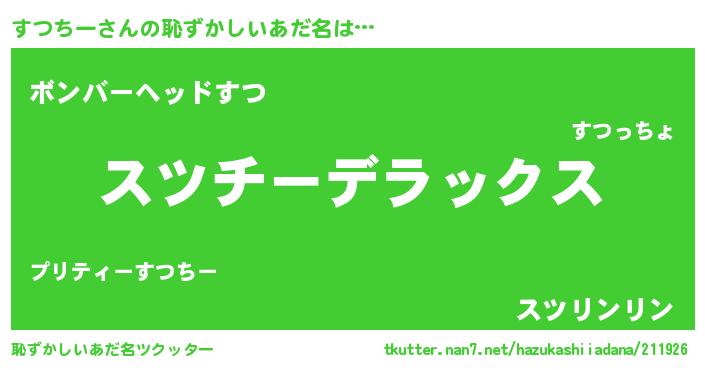 | 男性向けラノベタイトル風あだ名 | 『すつちー~年齢イコール彼女いない歴の魔法使い~』 |