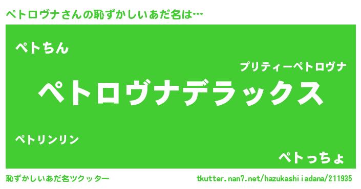 | 意味不明あだ名 | 『自称ペトロヴナ』『永久保存ペトロヴナ』 |