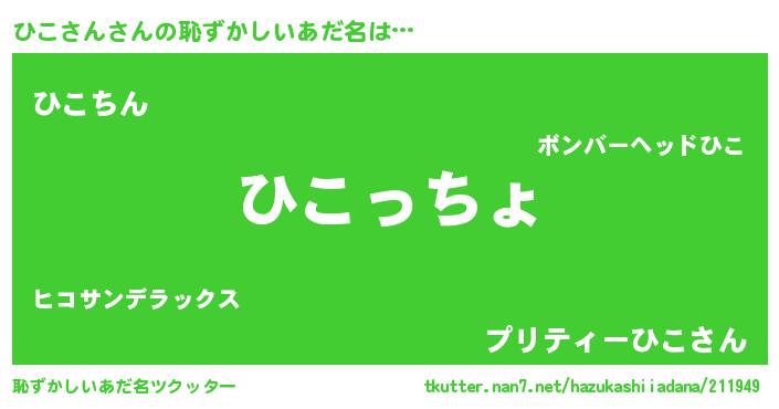 | ヒーロー風カッコイイあだ名 | 『ウルトラひこさんマン』『ネオヒコサン』 |