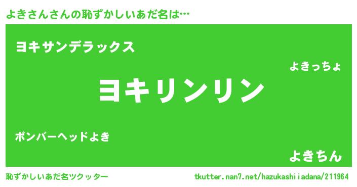 | 意味不明あだ名 | 『住所不定無職よきさん(7歳)』 |
