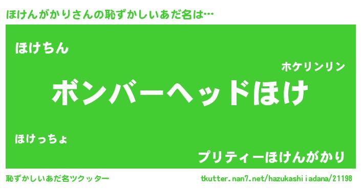 | ヘコむあだ名 | 『ほけんがかり(震え声)』『ほけにゅー』 |