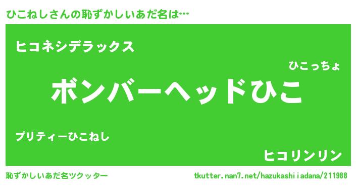 | ヘコむあだ名 | 『ひこお』『レバニラ』『ひこにー』 |