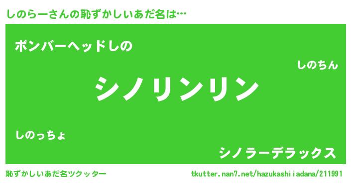 | 意味不明あだ名 | 『とにかく怪しいしのらー』 |