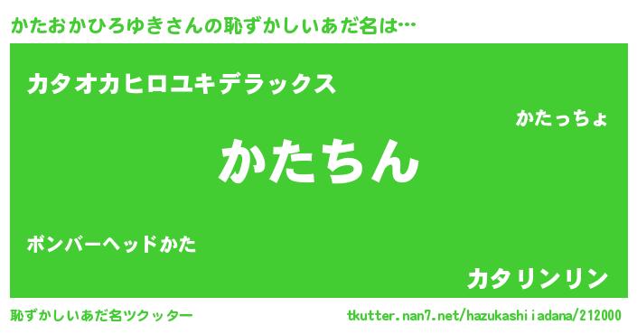 | ヒーロー風カッコイイあだ名 | 『ネオカタオカヒロユキ』『仮面カタダー』 |