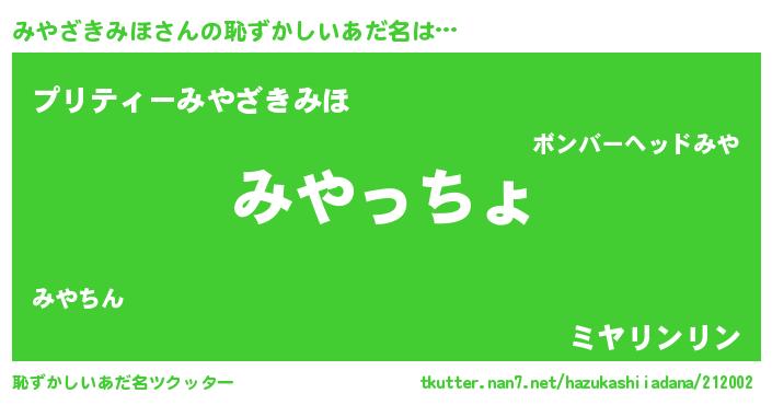 | 男性向けラノベタイトル風あだ名 | 『ミヤザキミホスレイヤー』 |
