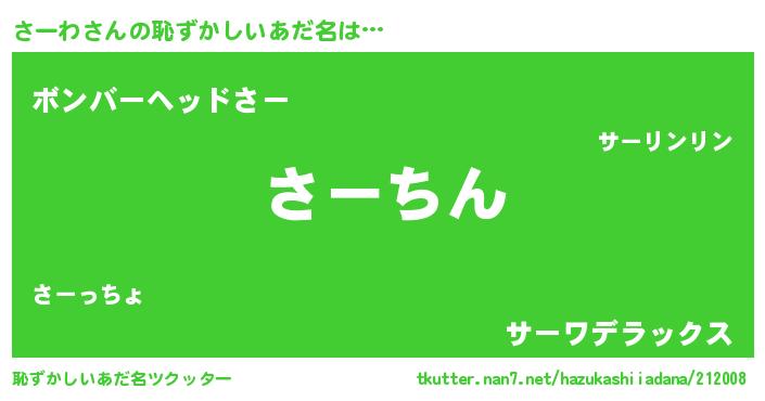 | ヘコむあだ名 | 『さーわ(笑)』『さー太郎』 |
