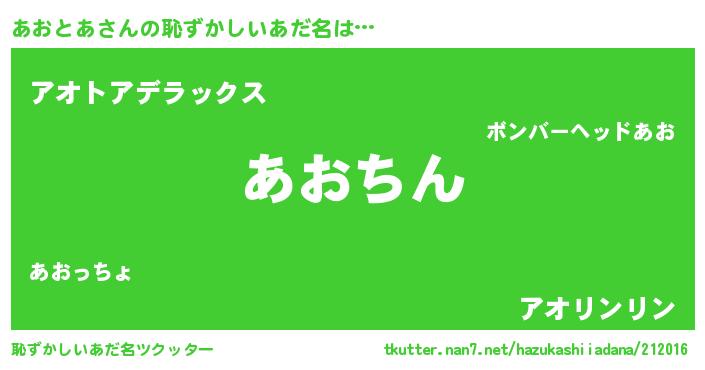 | ヘコむあだ名 | 『あおとあ(笑)』『あおを』『豆乳』 |