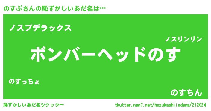| ヘコむあだ名 | 『のすぷ(笑)』『のすっぺ』 |