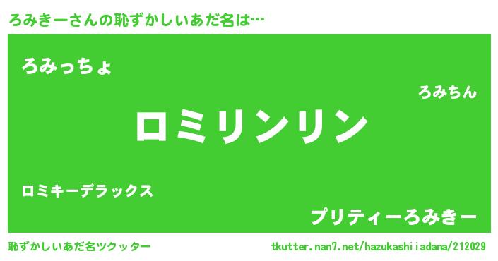 | ヘコむあだ名 | 『ろみお』『豆乳』『ろみにー』 |