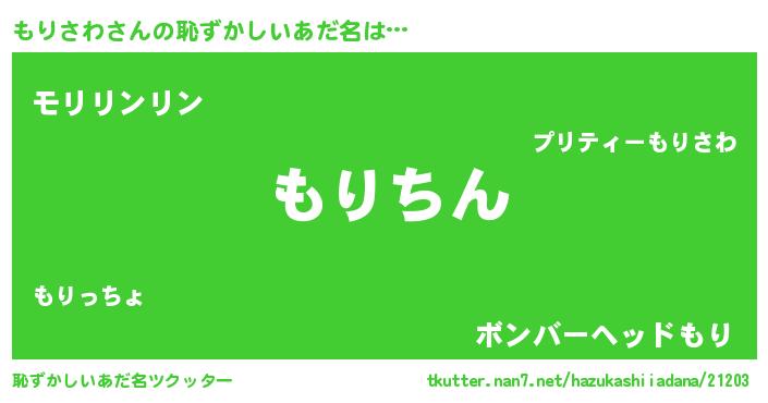 | ヘコむあだ名 | 『もりさわ(笑)』『もりを』 |