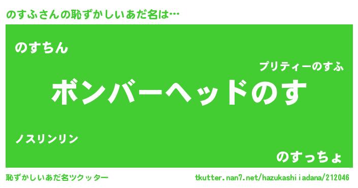 | ヘコむあだ名 | 『のすふ(爆)』『豆乳』『のすもー』 |