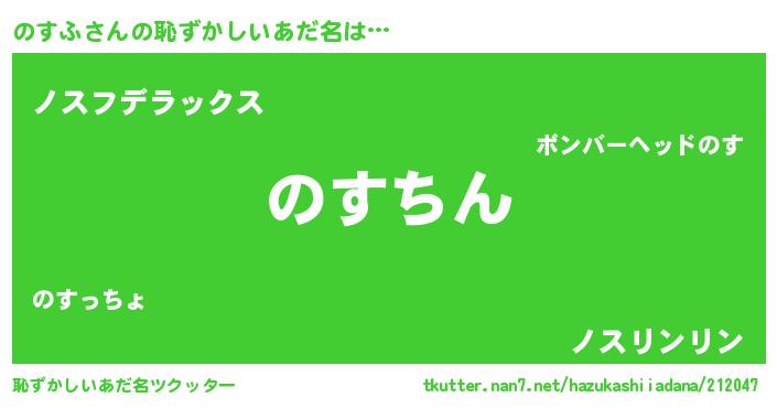 | ヘコむあだ名 | 『のすふ(笑)』『のすぷりん』『豆乳』 |
