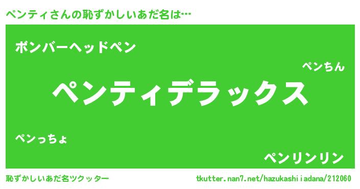 | 意味不明あだ名 | 『住所不定無職ペンティ(13歳)』 |