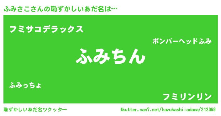 | 意味不明あだ名 | 『永久保存ふみさこ』『自称ふみさこ』 |