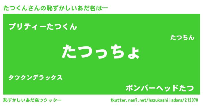 | ヒーロー風カッコイイあだ名 | 『仮面タツダー』『ウルトラたつくんマン』 |