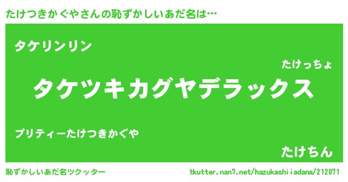 | 男性向けラノベタイトル風あだ名 | 『Re:たけつきかぐやから始める異世界生活』 |