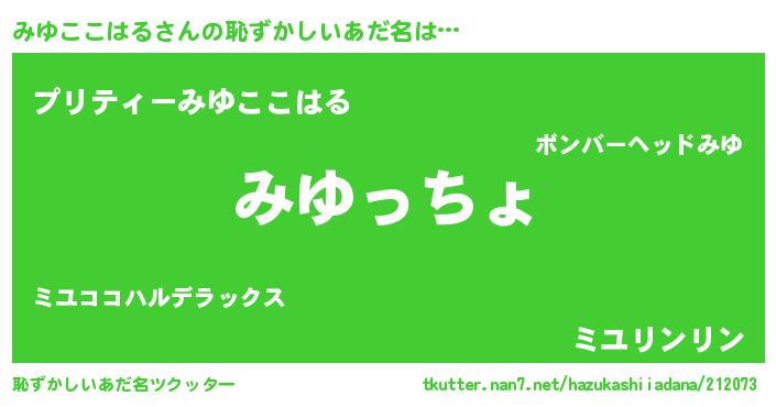 | ヘコむあだ名 | 『つくし』『みゆもー』『みゆっ子』 |
