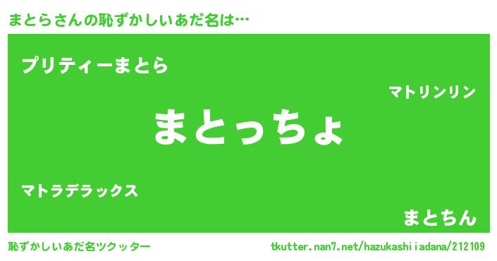 | 意味不明あだ名 | 『まとらフォーエバー』『ペロリンまとら』 |